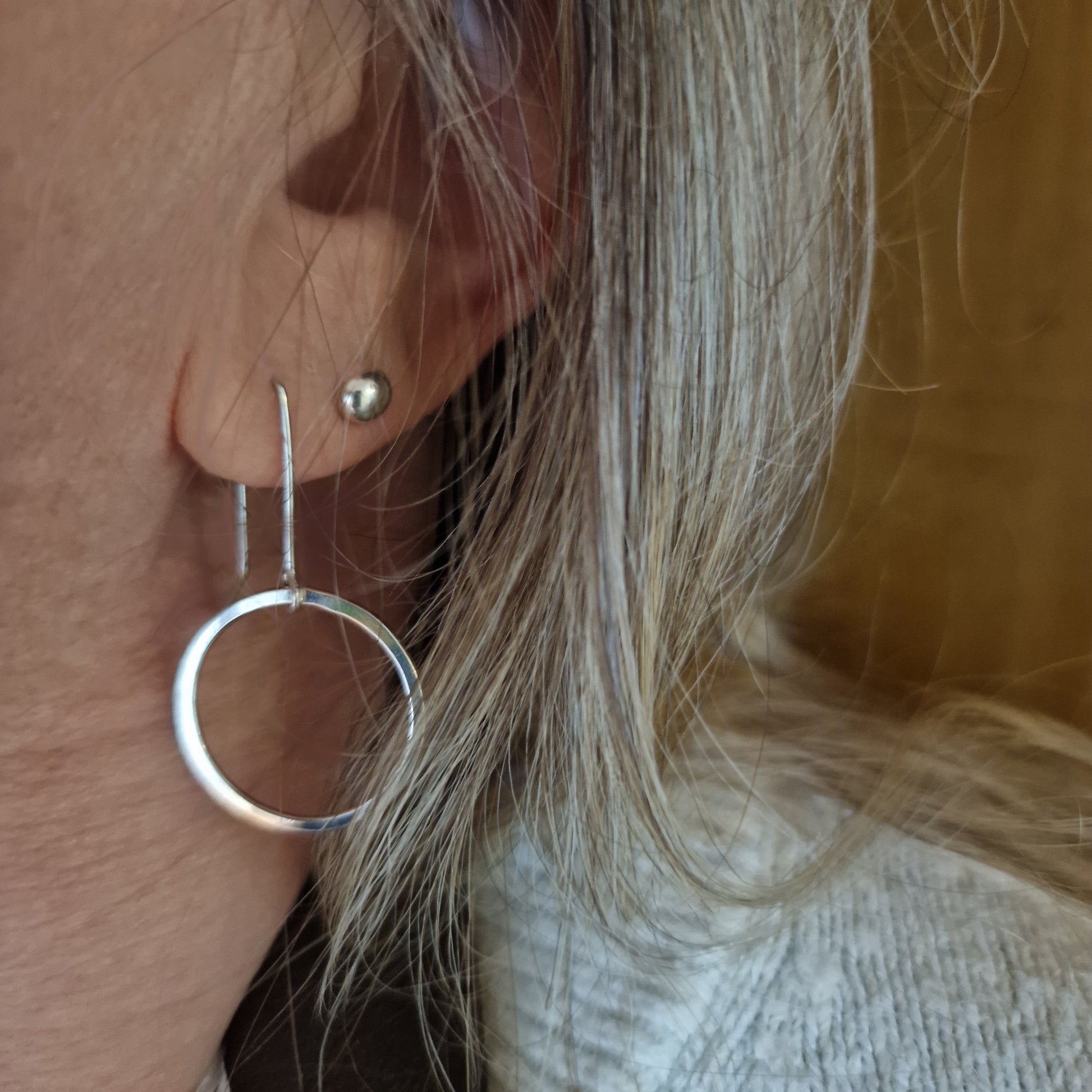En silvercirkel som dinglar nedanför örsnibben. Enkel och vacker.