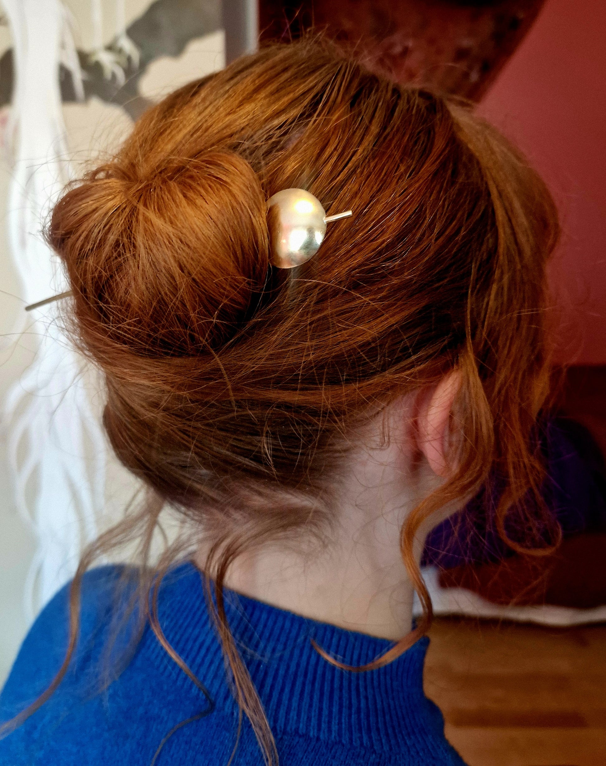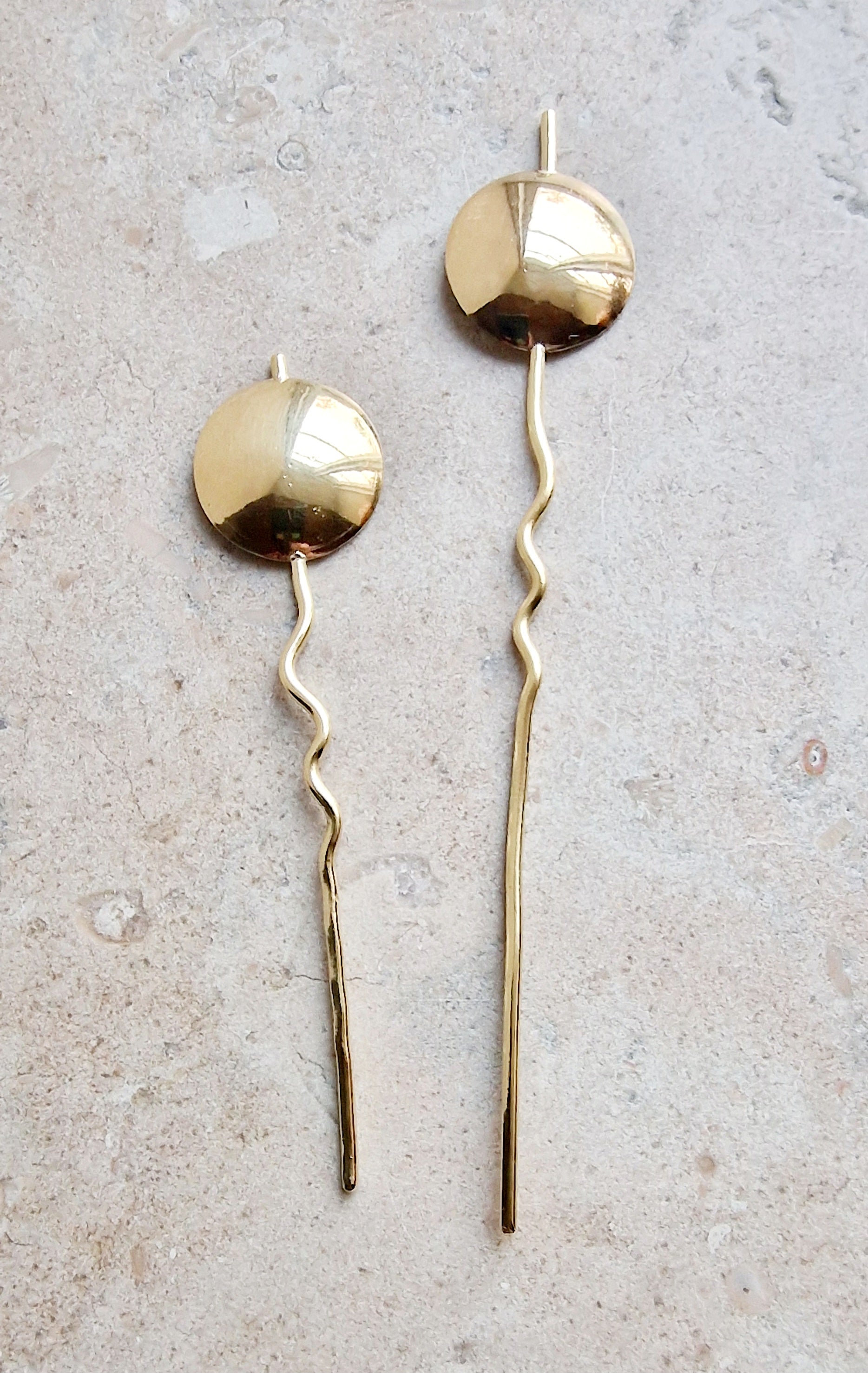 Handgjord hårnål av mässing för att göra enkla håruppsättningar.
